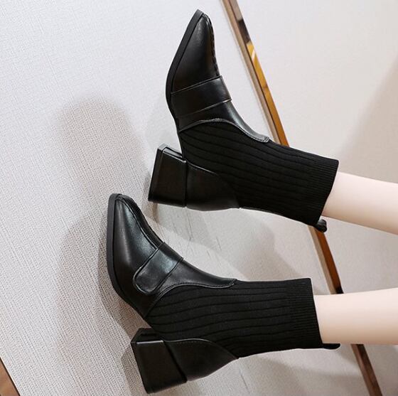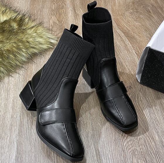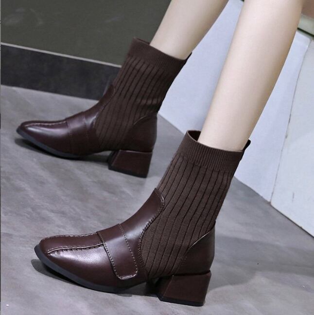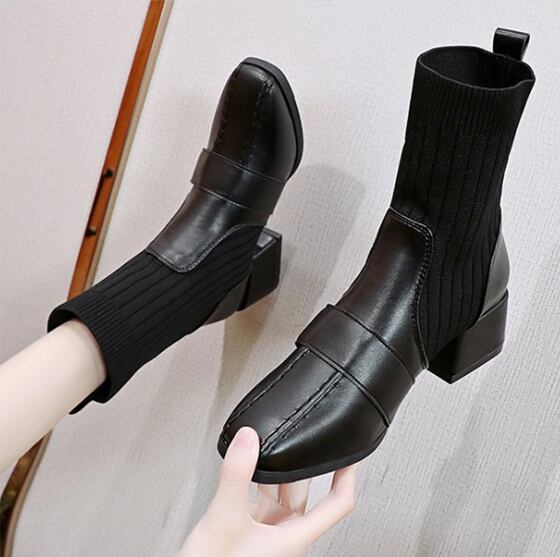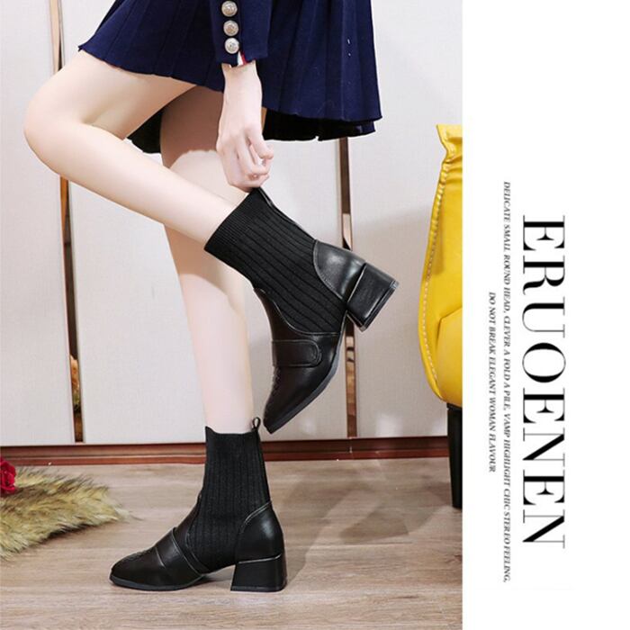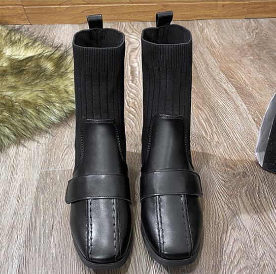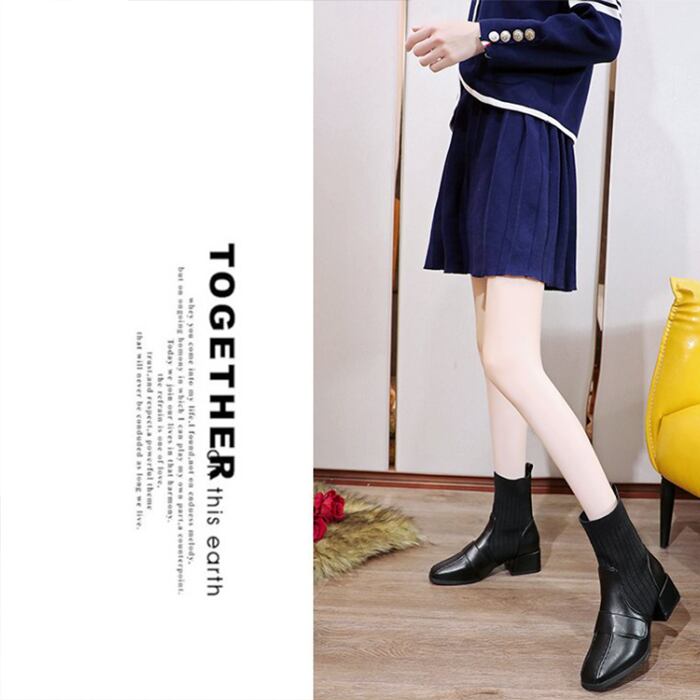 定番 人気 靴 ブーツミディ 裏起毛 ミドル ショート アンクル ソックスブーツ 厚底